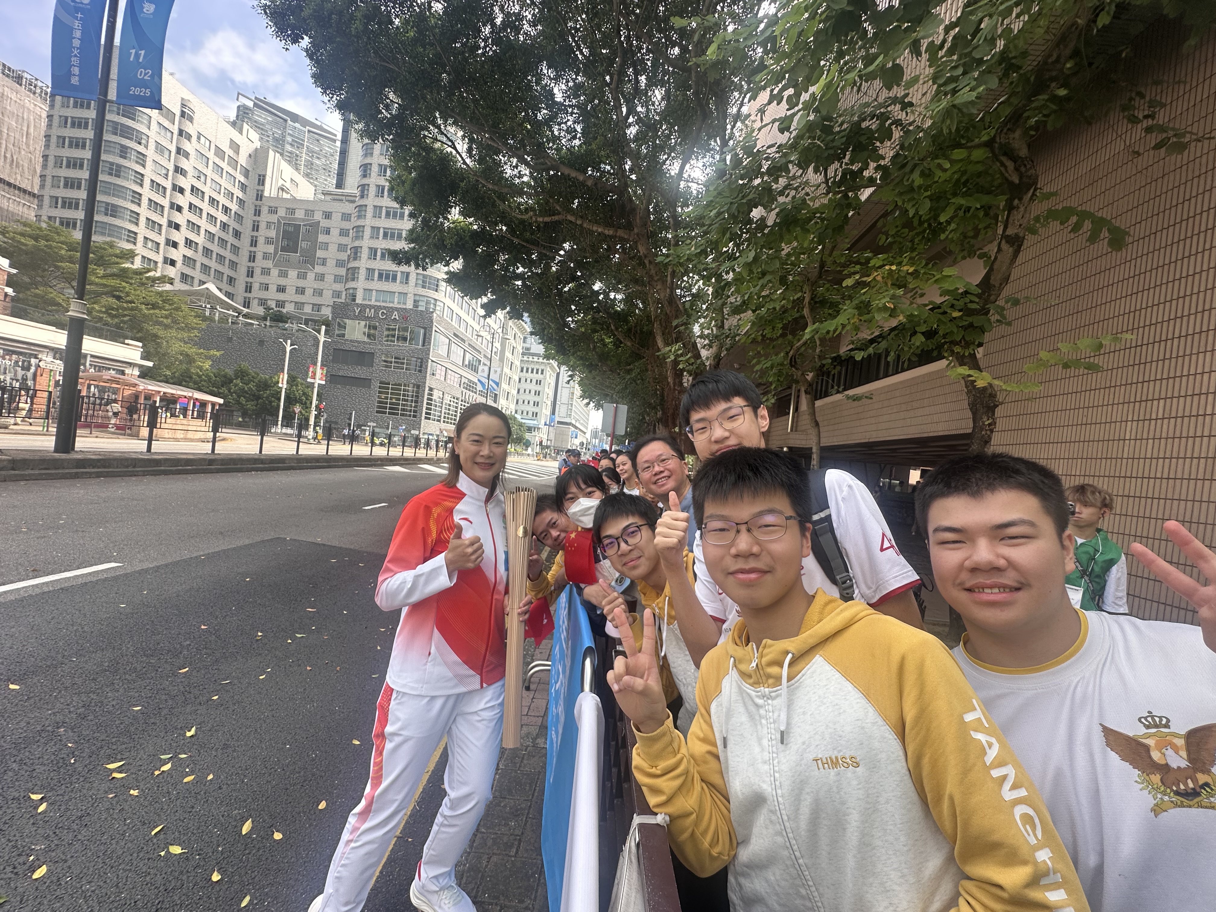 Latest NewsTo promote the spirit of the National Games, the torch relay for this major sporting event was held simultaneously on November 2 in four cities: Hong Kong, Macau, Guangzhou, and Shenzhen. In order to unite the community and create a festive atmosphere to welcome the event, the HKSAR Government invited students from our school to form a cheering team along the torch relay route, participating in the cheering activities and witnessing this historic moment together.